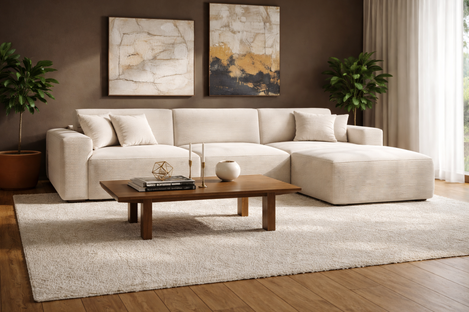 Natürliche Strukturen und warme Farbtöne verleihen jedem Raum eine angenehme Atmosphäre und machen jedes Möbelstück zu einem langlebigen Begleiter.